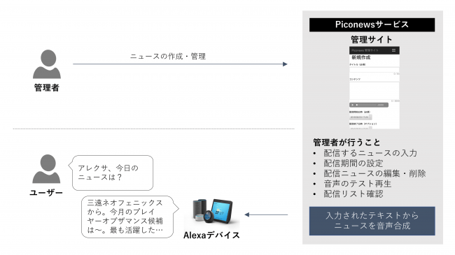 株式会社Shaxware (以下 Shaxware、本社: 愛知県豊橋市、代表取締役: 社本明弘) は、Amazonが提供するクラウドベースの音声サービス「Amazon Alexa」に対応するニュース配信サービス Piconews(ピコニュース)の提供を2019年3月12日より開始します。Piconewsによって、ニュース配信者は開発や録音をすることなく簡単に独自の音声コンテンツを作成し、Amazon Alexaのフラッシュニュースを配信することが可能になります。