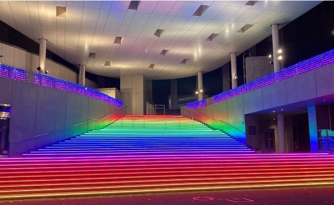 フェスティバル広場のカラフルな大階段が 16 時から 22 時までの間、点灯中!