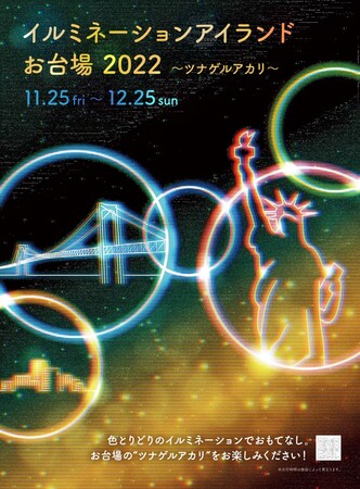 お台場エリアの商業施設や宿泊施設、交通機関など全14の施設が参加し、様々なイルミネーションを一斉点灯する、『イルミネーションアイランドお台場2022』を、2022年11月25日(金)~12月25日(日)まで開催いたします。