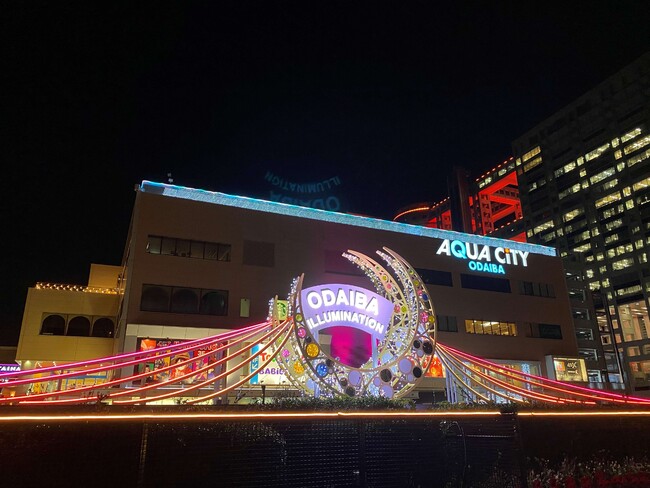 『アクアシティお台場』も全体的にライトアップされ、季節に合わせた色彩を演出しています!