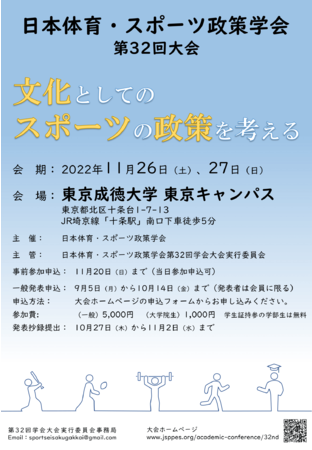 「文化としてのスポーツの政策を考える」 日本体育・スポーツ政策学会 第32回大会