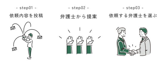 - 複数の弁護士から届いた提案内容を見て、気になる弁護士を選ぶ