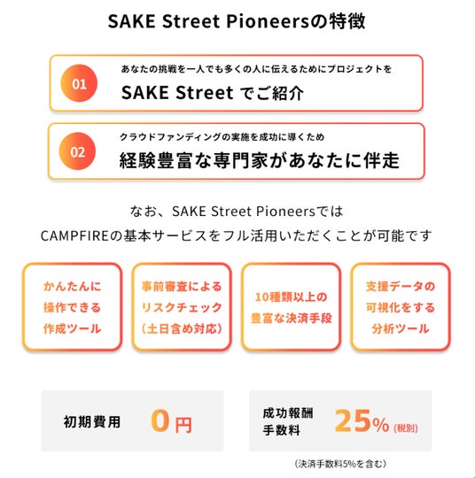 SAKE Street Pioneers クラウドファンディングへのお申し込みと手数料などの詳細はこちら