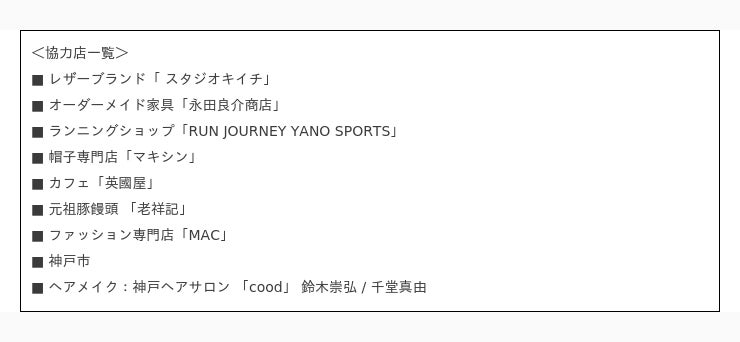 また、今回の企画は3月26日より開催される神戸コレクションに便乗する形で実施。神戸コレクションには呼ばれてないけど、モデルになった気分で今回のテーマである「カッコイイは人の中にある」を体現しました。また、神戸コレクションの今年のテーマ「花」を取り入れたスタイリングで、普段とは違う一面を神戸の皆さんに見て楽しんでいただき、商店街と神戸の街がが少しでも元気になればいいなという思いがあります。