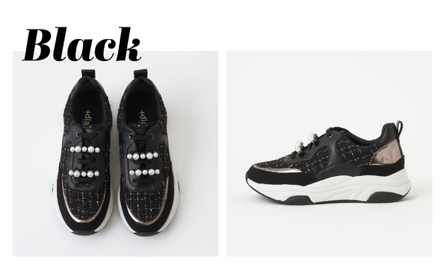 上品なツイード生地とパールアクセサリーで「+diana」のダッドスニーカーを女性らしくアレンジしました。ボリュームがあって今っぽいのに、驚くほど軽いのでとても履きやすいです。フェミニンコーデに合わせて、スポーツMIXなおしゃれを楽しんでくださいね♪