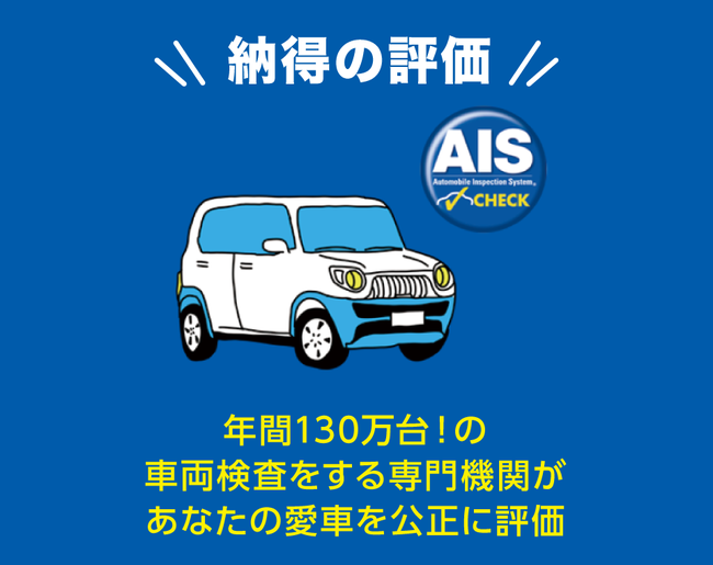 ※ 株式会社AISは大手中古車掲載サイトでも採用されており、中古車取引の判断基準として活用されています。