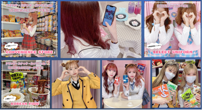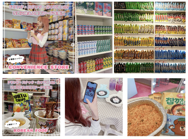 を併設。韓国制服着て、韓国コンビニで購入したスナックやラーメン、ドリンクをその場で食したり、写真に撮ったり。さらにはTikTok専用の撮影ブースで動画撮影したりなど、SNSに#映える#渡韓ごっこが体験ができます。