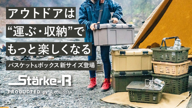ツールボックスを国内自社製造する老舗工具箱メーカー 株式会社リングスター(本社:大阪府大阪市、代表取締役:唐金 吉弘)によるアウトドアブランド「Starke-R(スタークアール)」は、ショルダーベルト付き大型ボックスと浅型バスケット、さらにバスケットがテーブルになるステンレス天板を、応援購入サイト「Makuake(マクアケ)」にて2021年12月27日(月)より先行発売を開始します。