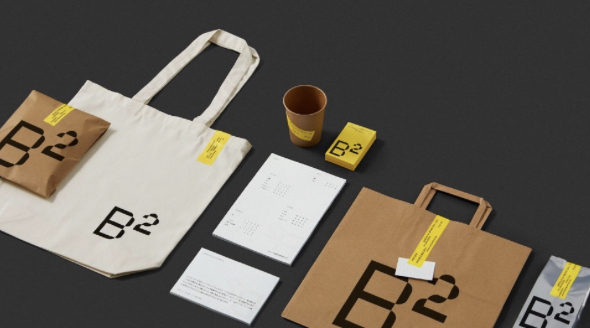 美味しいブレッド「BREAD」とコーヒー豆「BEAN」のマリアージュを、お客様に楽しんでいただきたいという想いを込め命名された「BREAD & BEAN」。頭文字の2つの“B”を 2 乗して、「B²(ビースクエアード)」という名前になりました。B²のロゴはボールドで角ばったインダストリアルシェイプの「B」に、 パンの柔らかさとコーヒー豆の丸みを帯びた可愛いシェイプを加えデザインされました。製作はニュージーランドの国民的人気のグラフィックデザイナー、Tyrone Ohia(タイアロン・オハイア)。