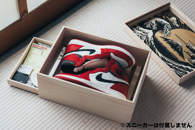 約250足を保有するスニーカーマニアのリーボ社長がプロデュース及びデザインを手掛け、増田桐箱店がひとつひとつハンドメイドで丁寧に制作