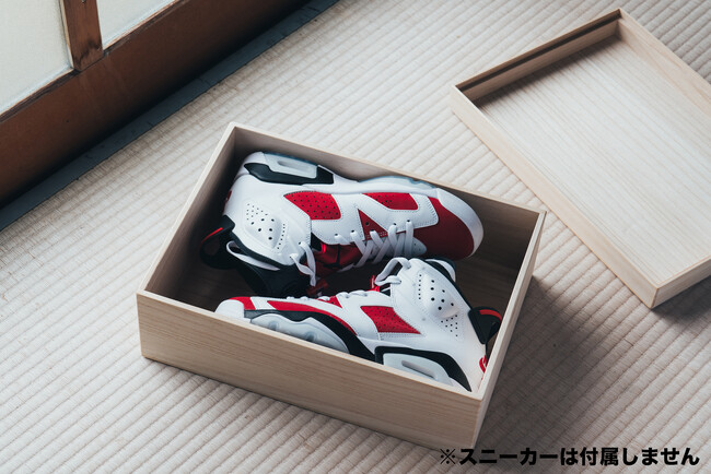 リーボの社長、松尾龍馬(自身もスニーカーマニアとして約250足を保有)がプロデュースおよびデザインを手掛け、増田桐箱店がひとつひとつハンドメイドで丁寧に制作した「桐尊足-キリノミコト-」の桐箱は、桐の優れた防湿性・防虫性・防臭性といった特性を活かすだけでなく、大切なスニーカーを最良の状態で保管できるように設計されています。