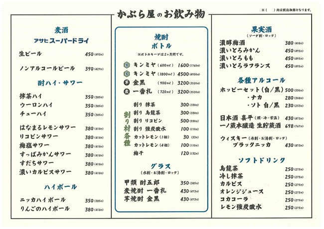 ※ 「かぶら屋プラス」は業態名ではございませんので、店舗名は「かぶら屋」になります。