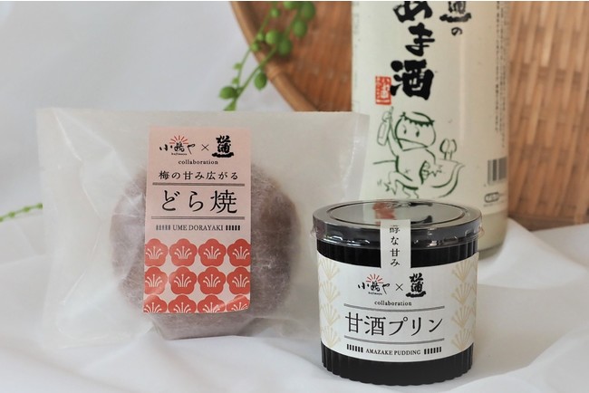 「甘酒プリン」「いちごさんプリン」をはじめ、地元の美味しいものを取り入れた数々の人気商品を生み出した小嶋やが、地域コラボレーション企画として新たに考案した『梅どら焼き』。地元楠久門前通りにある、創業300年の老舗酒蔵松浦一酒造の大吟醸梅酒の梅を、ふわふわ生地の甘いどら焼きに優しく包み込んでいる。厳選された素材選びはもちろん、化学添加物は一切使わず、手作りにこだわり続ける小嶋や。そのまま食べても美味しい梅が、どら焼きの上品な甘さと上手く融合し、ほんのりとお酒の香りが口の中に広がる。
