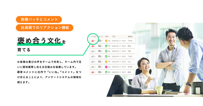 この業界初※2となる『リアルタイムな「顧客の声」に対して、リアルタイムな「従業員同士のフィードバック」をする新機能』の追加により、現場の従業員同士だけでなく、エリアマネージャーや本部社員、企画・開発部門、経営層など、さまざまな立場の方が「顧客の声」を起点につながり、組織を越えて相互に認め尊重し合う組織風土を可視化することで、CX(顧客体験)とEX(従業員体験)の改善と事業の持続的成長をサポートします。