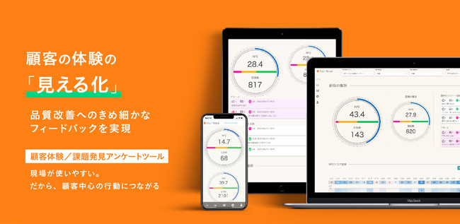 「Your Voice」 は、CX(顧客体験)とEX(従業員体験)を「見える化」するためのリアルタイムフィードバックを行い、現場・経営が何の改善に力を入れるべきかをサポートする顧客体験改善支援ツールです。企業のCXを「見える化」をする主指標としてNPSを採用。NPSアンケートの作成からデータの集計・分析できるだけでなく、現場スタッフが集票の状況や改善ポイントをリアルタイムに判断できるようになります。また、得られた顧客の声と数値は、業績の先読み指標として使うこともできます。