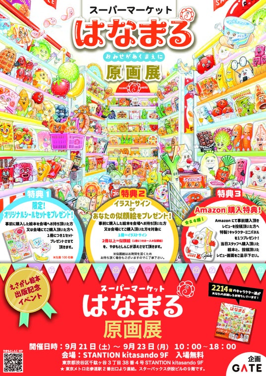 やまもとしんじの大人気絵本『スーパーマーケットはなまる おみせがあくまえに』の増刷が決定しました。また、発刊を記念してやまもとしんじ個展イベントを開催いたします。