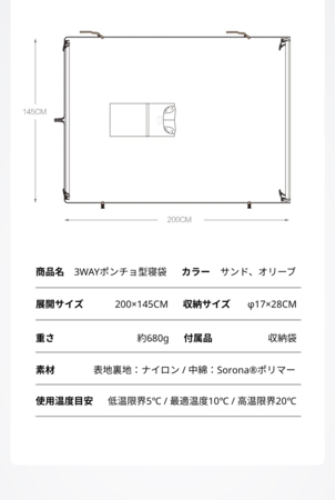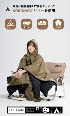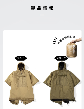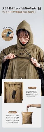 3種の使い方を場面に合わせて自在に変化:ポンチョ、寝袋、掛け布団