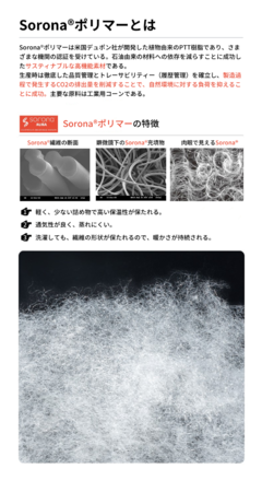 米デュポン社開発、植物由来のサスティナブル素材SORONA(R)︎を中綿として使用