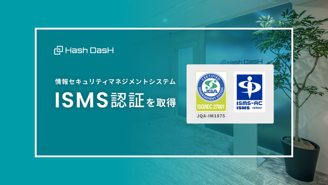 Hash DasH Holdings株式会社(本社:東京都千代田区、代表取締役社長:林和人、以下「HHD」)および子会社のHash DasH株式会社(同、以下「HSEC」)は、2022年4月8日、情報セキュリティマネジメントシステム(ISMS:Information Security Management System)の第三者認証基準である国際規格「ISO/IEC27001:2013/ JIS Q 27001:2014」に基づく認証を取得しました。