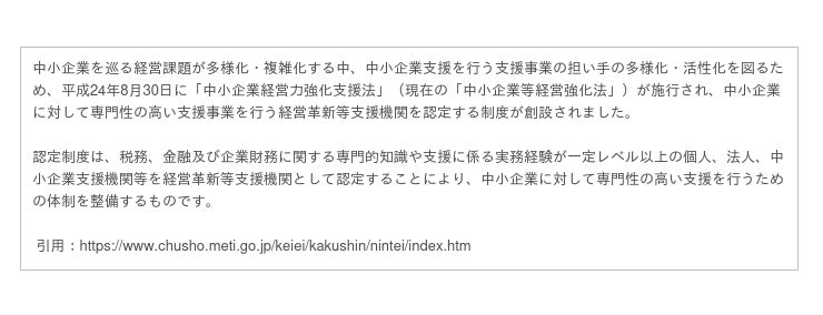 当機構は、関東財務局長及び関東経済産業局長が認定する「経営革新等支援機関」に認定されています。