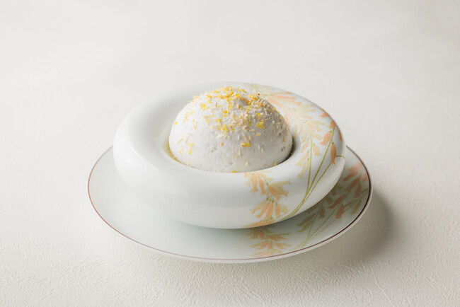 人気のデザートがリバイバル。ココナッツミルクを泡立てたエスプーマの中にはマダガスカル産ショコラ75%のアイス、フレッシュグレープフルーツやコンフィ、ザクザク食感のココナッツやヘーゼルナッツのショコラが隠れています。