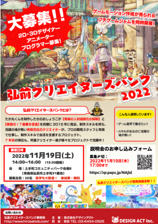 【弘前クリエイターズバンク】は、東京のゲーム会社である株式会社デザインアクト(http://www.designact.co.jp/)が実施する、青森在住クリエイターとともに仕事をするプロジェクト。今年6年目となるこのプロジェクトでは、現在も多くのクリエイターが活躍しています。