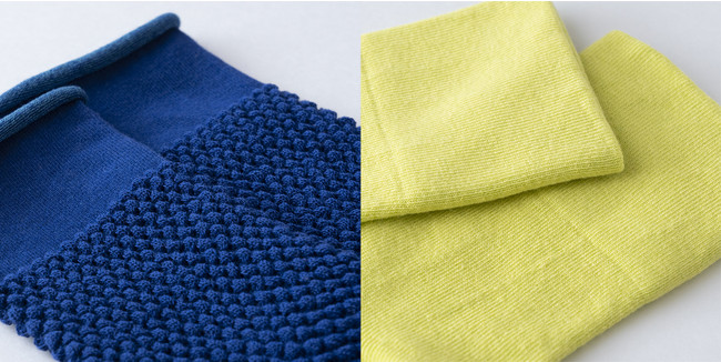 今回のセットは、締めつけず温めたい人のためのKIHON(基本)タイプと、リラックスシーンにおすすめのゆったりしたSHINSHUKU (伸縮) の2足。