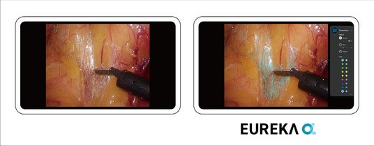 「Eureka α」は、手術用の内視鏡システムや手術支援ロボットから受けた映像信号を解析し、術者が通常確認するモニターとは異なるサブモニター上に疎性結合組織をリアルタイムに強調表示することで外科医の視覚認識を支援するプログラム医療機器です。疎性結合組織とは、臓器と臓器の間に存在する繊維状の構造物であり、がん等の手術における切除ラインの目印となる重要な構造物です。熟練医は、適切な緊張をかけることにより、疎性結合組織を露出しながら手術を進めます。この、疎性結合組織を露出し、剥離していく手技は世界で共通していますが、日本において特に発展しており、Eureka αは繊細な手術を行う日本だからこそ開発できた技術ということが出来ます。
