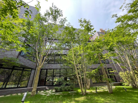 寮棟と社宅棟をつなぐ緑豊かな中庭