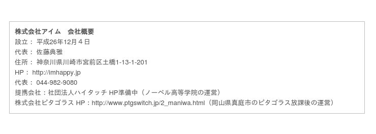発達障害の子どもたちをサポートする放課後デイサービス「アインシュタイン放課後」「エジソン放課後」などを運営している福祉施設。全ての個性が「 I am! 」と胸をはって自己宣言できる世の中にしていきたいという思いを込めて、「アイム」と命名。2019年、第7回かながわ福祉サービス大賞、大賞および会場審査員賞をダブル受賞。