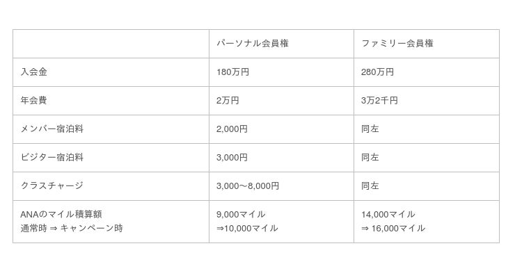 費用については以下の通り。なおANAマイレージクラブパートナーである同社の会員権を購入するとANAのマイルが貯まるためマイルの積算額についても併記します。