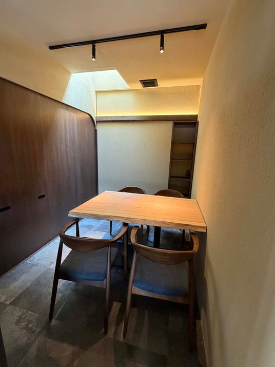 店内はカウンター12席、1階テーブル/8席、2階個室6室/34席の計54席を備え、大小様々な個室を完備。最大30名の宴会対応など、少人数での食事から会食、接待、打ち上げ、宴席まで幅広いシーンに対応します。落ち着きのある雰囲気の中で、肩ひじ張りすぎず、それでいて上質な時間を過ごせる店舗づくりを追求しました。会食や宴会に最適なコース料理は春夏秋冬の旬を詰めこんだお献立でご用意。