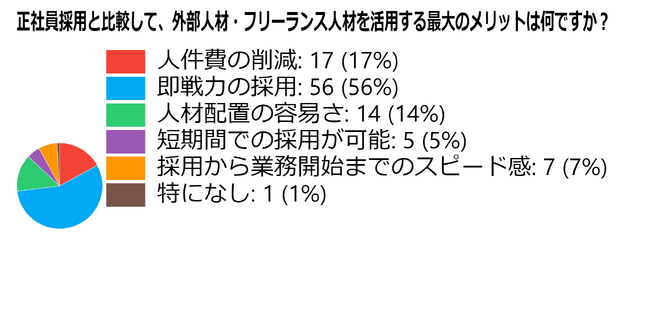 正社員採用と比較して、外部人材・フリーランス人材を活用するメリットとして最大のメリットは何ですか?