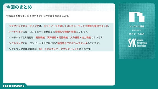 「クラウドとはどのようなサービスか?」「クラウドサービスのメリット」「クラウドサービスの分類・サービス範囲」等は、「Microsoft認定 Azure Fundamentals AZ-900」や「AWS Cloud Practitioner」の試験でも頻出の内容です。本講義でそれら単元の理解を固めることで、資格取得に十分に活かすことができます。