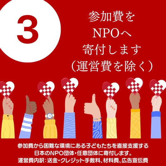 参加費は運営費を除き、すべてを日本の子どもたちのために活動するNPOなどに寄付いたします。