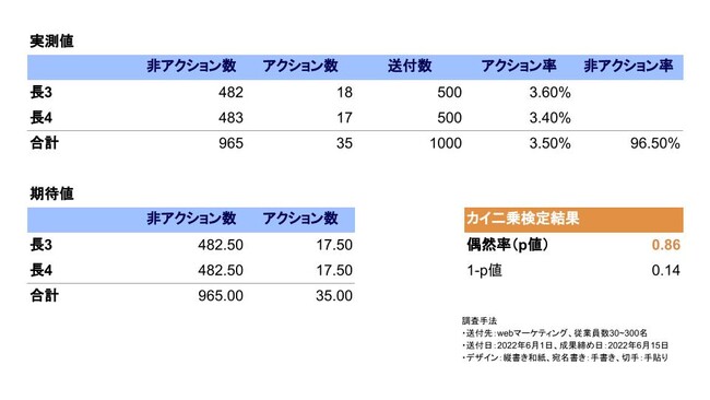 実測値として、長3封筒がアクション率3.6%と高いが、長4封筒のアクション率3.4%と大差は生じない