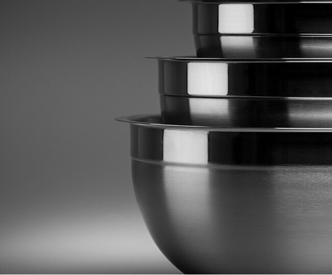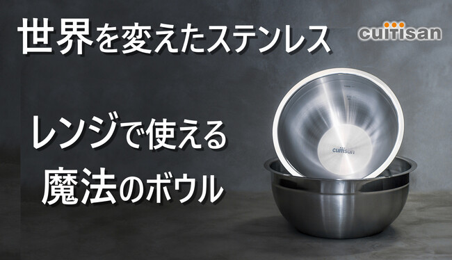 ステンレス製のボウルは、軽くて使い勝手が良く耐久性も高い素材であるが、電子レンジやオーブンで使えないといった調理工程における課題があった。この課題を解決したのがクイッティサンである。