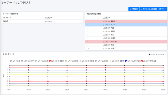 機能2:検索キーワードのサジェストワードの一覧の監視、及び順位の監視