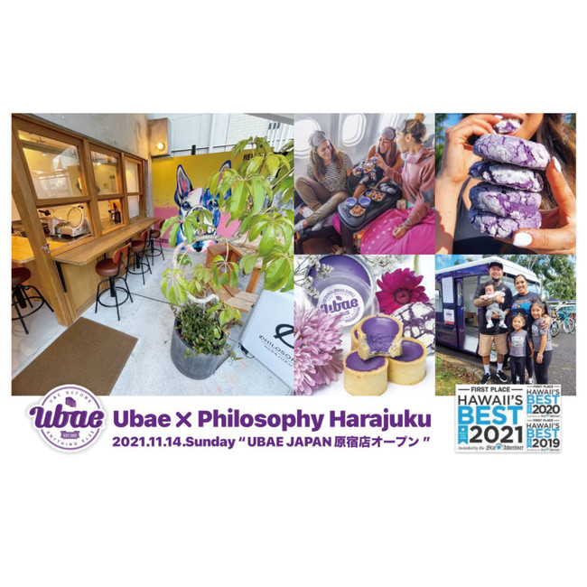 11月14日に原宿にオープンした「UBAE×philosophy」原宿店。今年の夏ハワイから日本に初上陸を果たしたスイーツショップとのコラボカフェです。主にテイクアウトメインの店舗にはイートインスペースも設置されています。