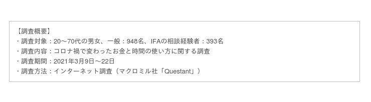 また、Fanが2021年3月度に実施したアンケート結果では、興味のある投資方法についての設問において「株式投資」が一般回答49%、IFAへの相談経験者63%で双方1位となり、「もっとも身近な投資方法」であることがわかりました。投資に関して誰のアドバイスを受けたいかという設問では、IFAへの相談経験者は「IFA」(50%)が1位だったのに対し、一般回答では「自分で判断したい」(49%)が大差で1位となりました。