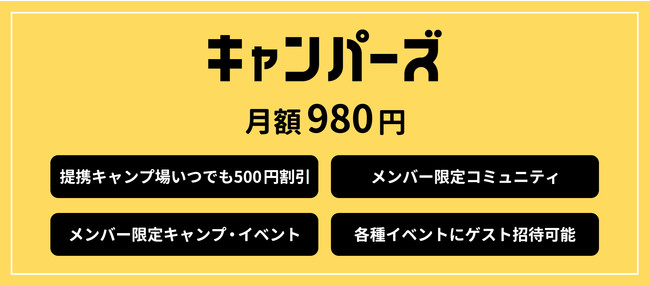 ※詳細な条件、提携キャンプ場情報は公式Webサイトやメンバー限定コミュニティ内で更新していきます。
