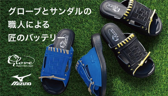 プロ野球選手が愛用するミズノのグローブ。その卓越した技術を手がける職人たちの匠の技が、サンダル製作の名匠と出会い、夢のコラボレーションにより独自のサンダルが誕生しました。