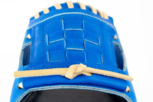 足の甲を覆うアッパー部分には、ピッチャーグローブのウェブ(捕球部位の網目)を再現。ピッチャーグローブに求められる繊細な感覚と耐久性、その究極の技術を、サンダルのデザインと履き心地にそのまま生かした一足。天然皮革のしなやかさはもちろん、グローブのように足に馴染む感覚は、一度履いたら手放せない特別な体験を提供します。