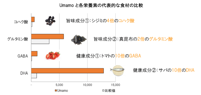 Umamoは、健康成分と旨味を兼ね備えたスーパーフードです。サバの10倍のDHAを含むだけでなく、GABAやBCAAといった現代人に嬉しい栄養素が豊富に含まれます。そして、旨味成分であるコハク酸やグルタミン酸が、カラスミ粉のような濃厚な海の旨味を醸し出します。植物性なので、魚を食べれなかったヴィーガン・ベジタリアンの皆様も、Umamoからならば美味しくDHAを摂取頂けます。