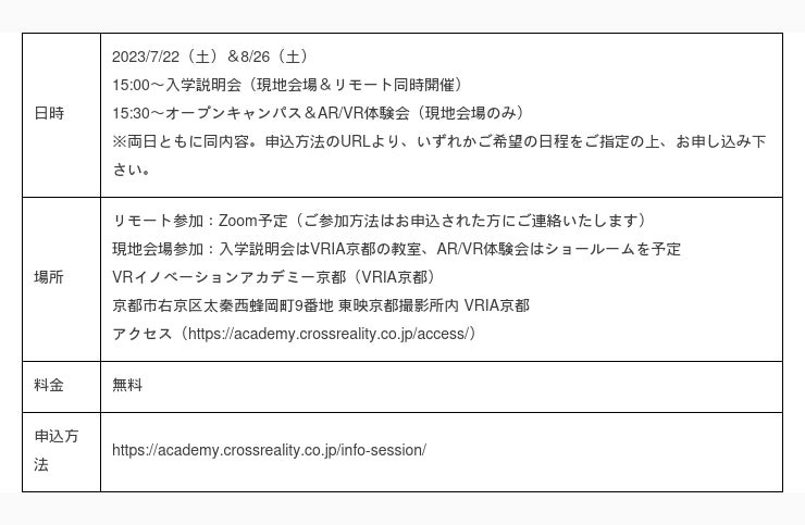 ~7/22 & 8/26に入学説明会・オープンキャンパス・AR/VR体験会開催~