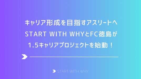 現役でプレーするアスリートの中で、引退後のキャリアについて不安を抱えたり、引退が決まってから今後のキャリアを模索するケースは少なくありません。そこで「多様な価値観のなかで、一人ひとりが納得度の高いキャリアを言語化し、実現できる社会をつくる」ことをミッションに掲げているSTART WITH WHYでは、アスリートが現役選手としてプレーに集中しながらも、ビジネス領域での経験を得ることで将来の選択肢を広げ、ビジネスキャリアの形成ができる「1.5キャリア」の取り組みを、「FC徳島」とスタートいたしました。アスリートがプレーを続けながら、将来に対する基盤をつくり、プレーでもビジネスにおいても高いパフォーマンスを発揮できる世界の実現を目指します。