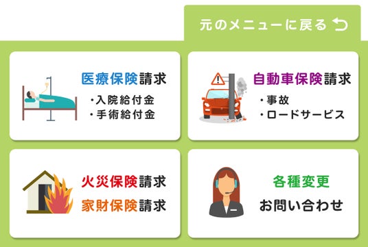 - アフターフォロー自動対応チャットボット:今まで電話で行っていた給付金請求、住所変更や契約内容の変更などの一次対応をLINEチャットとリッチメニューでサポートします。
