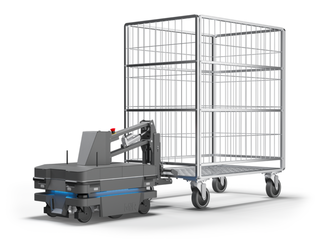生産や物流の現場、ヘルスケア環境などで、完全に自動化されたカートの引き取りと牽引が可能です。