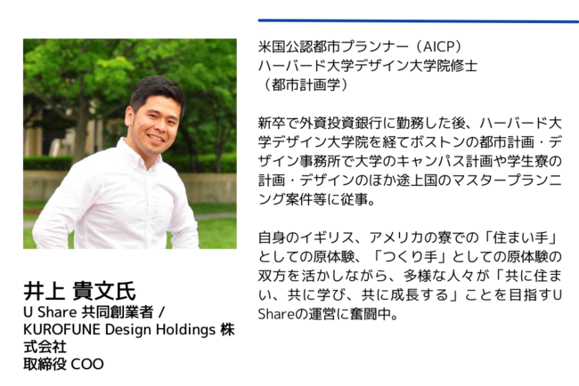 「寮のある学校」にも登壇いただいたU Share 井上さんにご登壇いただき、U Share 西早稲田から生中継をします。