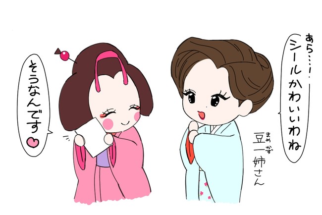 「まめっこ」のキャラクターの設定は、まめまめしい(身軽に良く動き回る)性格の芸妓の妖精です。そしていつも笑顔でかわいらしく、みんなに愛されるキャラをしておりますので、親しみがあり丸っこいようなイメージで《まめまめ日記》と名付けました。